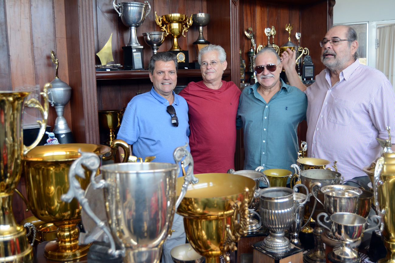 Paulo Gomes, Fábio Sotto Mayor e João Batista Borges Aguiar. Eles passaram a manhã em bate-papo com associados do Faixa Branca, local onde está grande parte do acervo dos pilotos, como troféus, macacões e outras relíquias.